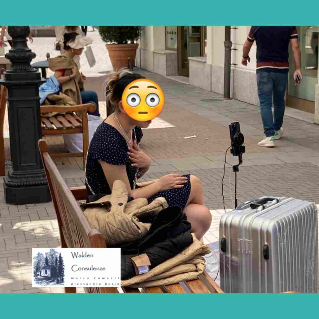 La foto l’ho scattata nei giorni scorsi, mentre ero di passaggio all’Outlet di Serravalle Scrivia. È “una buyer”, ovvero un’influencer straniera, che mostra abiti ed accessori in diretta e compra per i suoi clienti che sono on line. I più importanti hanno dei veri e propri uffici, con persone che scattano le foto e fanno i video, mentre poi loro gestiscono le dirette e curano i clienti personalmente.